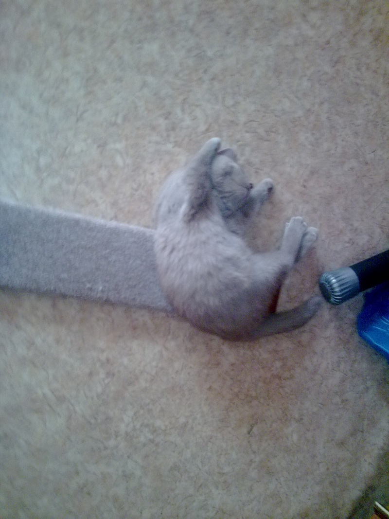 Щас без когтей, играемся мягкими лапками. Вчера купила расчёску -вечер в ванне провели -чесались(линька)