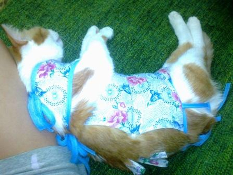 ! Моя красотка чувствует себя получше: кушает, сама дошла из комнаты до лотка в туалет и обратно, только все время спит. Сама подошла к коту, они носами понюхались, но кот зашипел и убежал