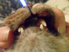 Раньше я писала, что королева расчесала все вокруг уха, мочка уха красная и горячая. По рекомендации врача "замазали" ухо фуцикортом.