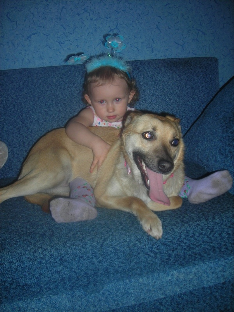 ). Это собачка-отказник, а в семье еще 3 свои собаки и кошки. Ребеночек наоборот добрее и здоровее будет с животными.