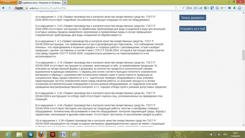 6) в нарушение п. 4.5 «Правил производства и контроля качества лекарственных средств», ГОСТ Р 52249-2009 инструкции: «по правилам мытья рук и дезинфекции рук персонала», «по соблюдению личной гигиены», «по переодеванию и ношению одежды» и «порядок работы с рекламациями, отзыв и возврат продукции с рынка» составлены в соответствии с ГОСТ Р 52249-2004, который в настоящее время утратил силу ввиду издания ГОСТ Р 52249-2009, следовательно документы не пересматриваются и не актуализируются;