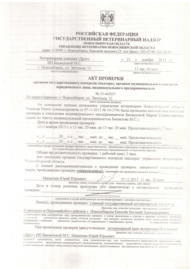Акт, выложенный Вами, это акт повторной проверки и то, что Вы устранили нарушения – мне любимцев не вернет! И честно не волнует, ноги моей больше не будет на пороге данной клиники! И предостеречь я хочу всех от потери животных.