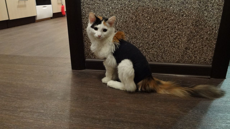 У меня новая кошка, которую простерилизовали боковым швом позавчера.