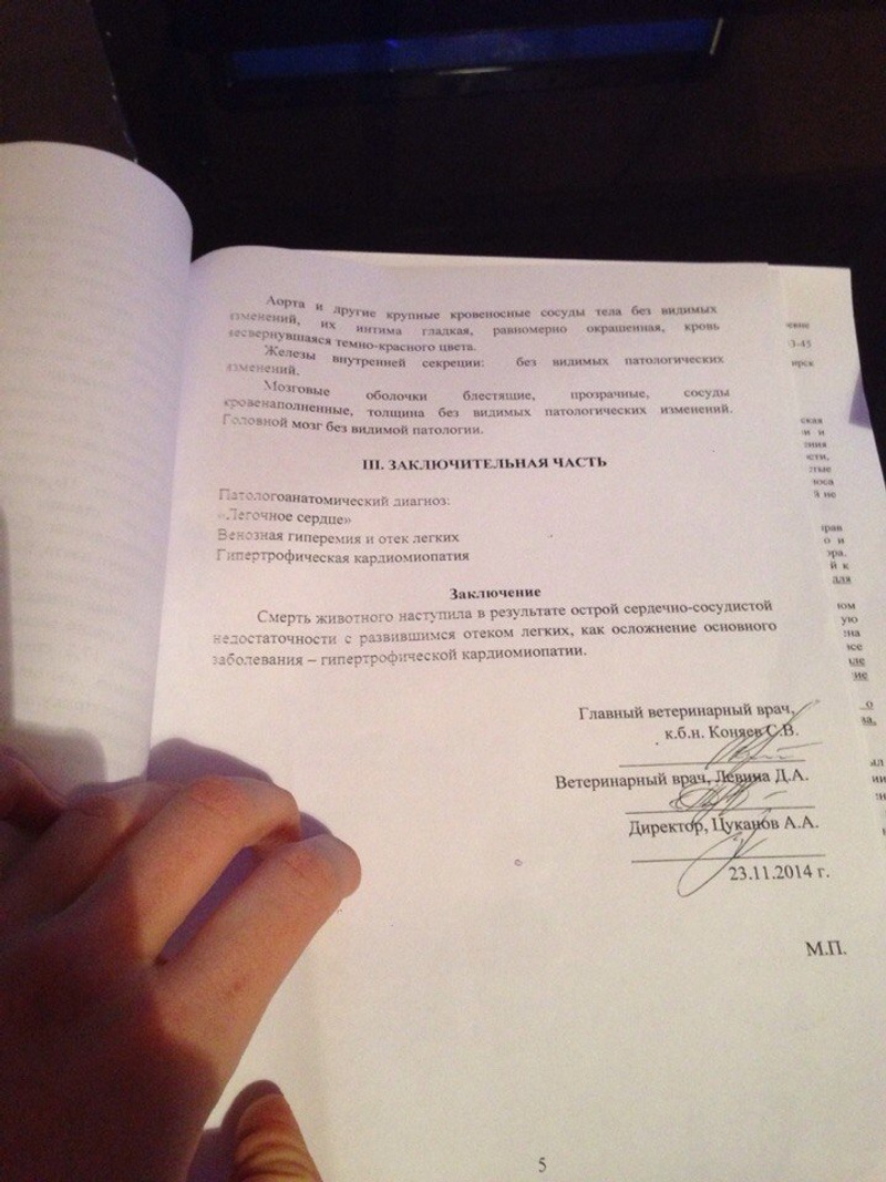 МНЕ ОТДАЛИ МЕРТВОГО КОТА. Даже если предположить,что у него была эта болезнь и он умер от нее,зачем мне отдавать мертвого кота? Почему нельзя было сделать все по нормальному? Если это такая порода почему не предложили сделать узи? Я уточняла у заводчика по потомству его родителей,ни у кого нет проблем со здоровьем! И в силу того,что как теперь выясняется,что Шатова Т.И. имела в практике еще один такой случай,я склонна верить заводчику.