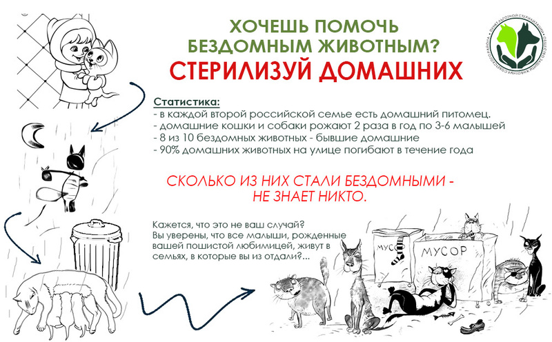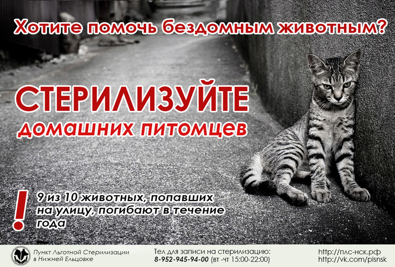 Мы призываем всех наших дорогих читателей: будьте популяризаторами стерилизации животных, несите нашу идею в массы! Расскажите о нас и, возможно, узнав о нас, кто-то еще стерилизует хоть одну кошку, и тем самым вы спасете еще 65000 жизней!
