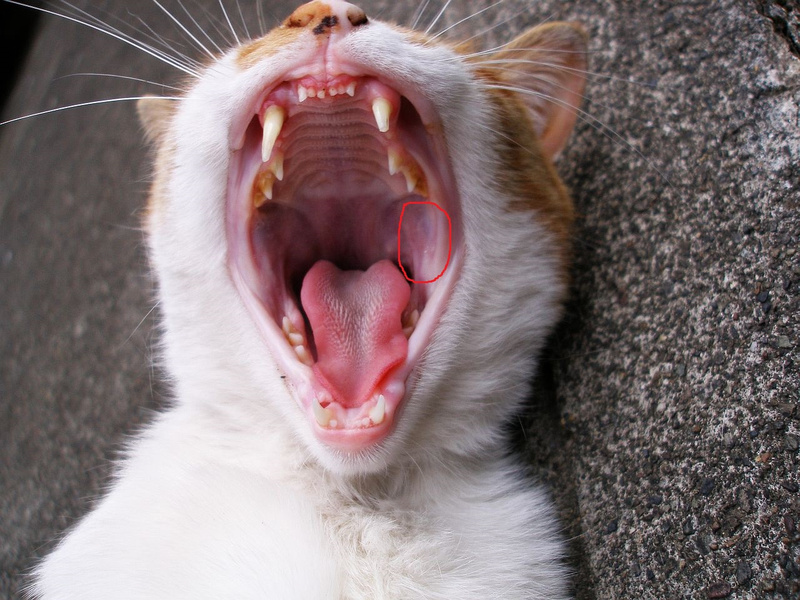 После операции пропили синулокс неделю, но рана все равно загноилась, поэтому нам назначили синулокс еще на 2 недели и увеличили дозу. Все было хорошо, но в последний день приема антибиотика котика вырвало ночью 2 раза и я не стала давать последнюю таблетку. В этот же день 19.12 он начал вскрикивать от боли, 21.12 я его отвезла на плановый прием, осмотрели рану, все хорошо зажило. Через пару дней наблюдений за котиком, я поняла, что ему больно зевать и есть, когда корм попадает в определенное место во рту. Съездила к врачу, нам назначили локсиком, сегодня 3й день приема, пока не помогло, только на время снимает боль. Прилагаю фото кота (не мой, из интернета), область обведенная красным у моего кота красного цвета и вся в небольших трещинах, возможно это и есть источник боли. Возможно у кого-то было что-то подобное.
