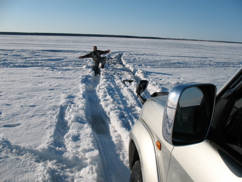 Утром выехали на лед и удивились - машина идет как по асфальту. Через некоторое время вокруг нас скопилось около 30 автомобилей. Увидели 099 и даже Ваз - 2105! Отчаянные парни,но они не догадывались что их ждало ближе к вечеру.