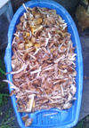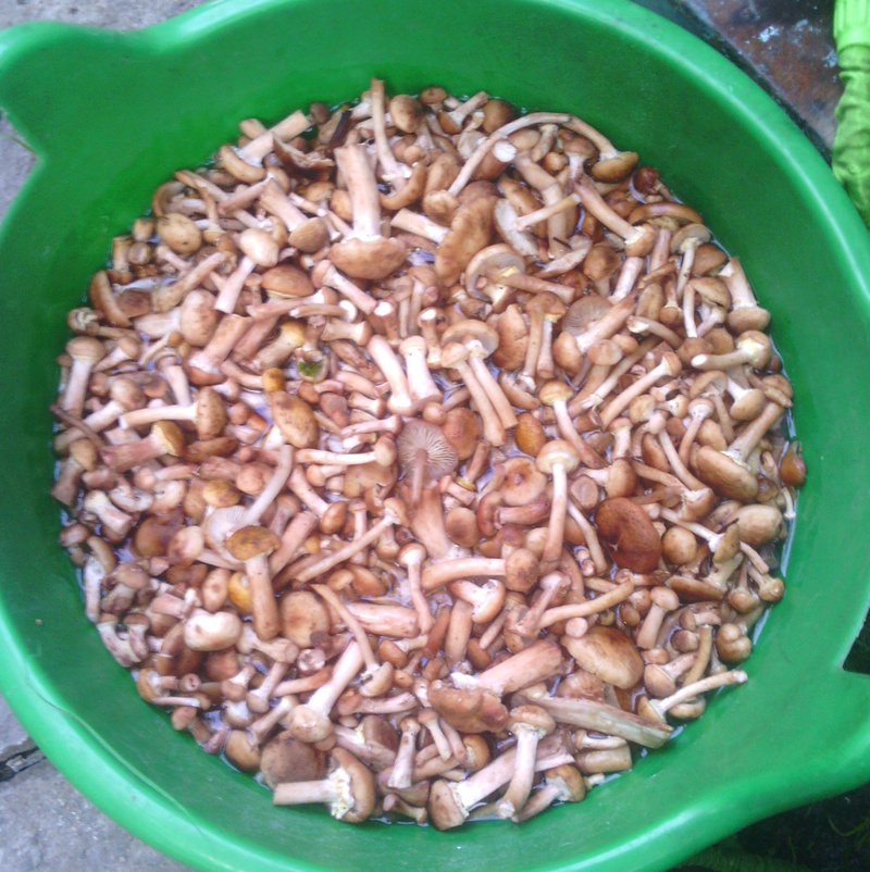 Вот результат после переработки.Тазик и ванна. Сразу видно - настоящий грибник!