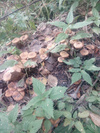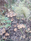 Опят очень много, на земле особенно. Все раскрытые к сожалению. Хотя на трассе продают и мелкие. Где берут не знаю.