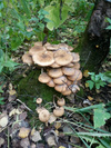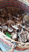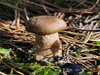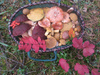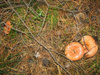 Грибников вдоль трассы хватает, и мы поддались всеобщему соблазну - хотели проверить что там насчет боровиков. Попалось только штук 5 боровых, практически все червивые. Несколько рыжиков, только 1 чистый. Под конец набрели на хорошую полянку лисичек. Опят море, но мы их практически не собирали, только самые привлекательные. Порадовали моховички, почти все чистенькие и молодые. Да! Нашла один странный гриб, который я сначала приняла за белый. При ближайшем рассмотрении и с помощью Интернета удалось определить, что это подосиновик белый (даже не знала, что такие бывают). Редкий гриб, занесенный в Красную книгу России. Если бы знали, то не стали срывать