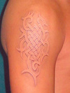 по поводу белой татуировки.такой ни разу не видела,есть к примеру татуировки как бы чуть темнее телесного цвета. белый выгорает сильно.я хоть свою защищаю от солнца,но всё равно после лета именно из за белого цвета придётся делать коррекцию