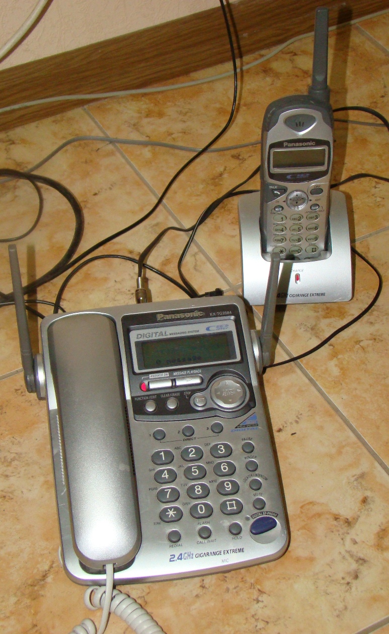 Телефон Panasonic KX - TG2584 c цифровым автоответчиком, радиотрубка со стаканом, крепление на стену обменяю на связку бананов. Изготовлен в Малайзии для США. Переходник есть. В рабочем состоянии, последний год не эксплуатировался.Обмен совершен.