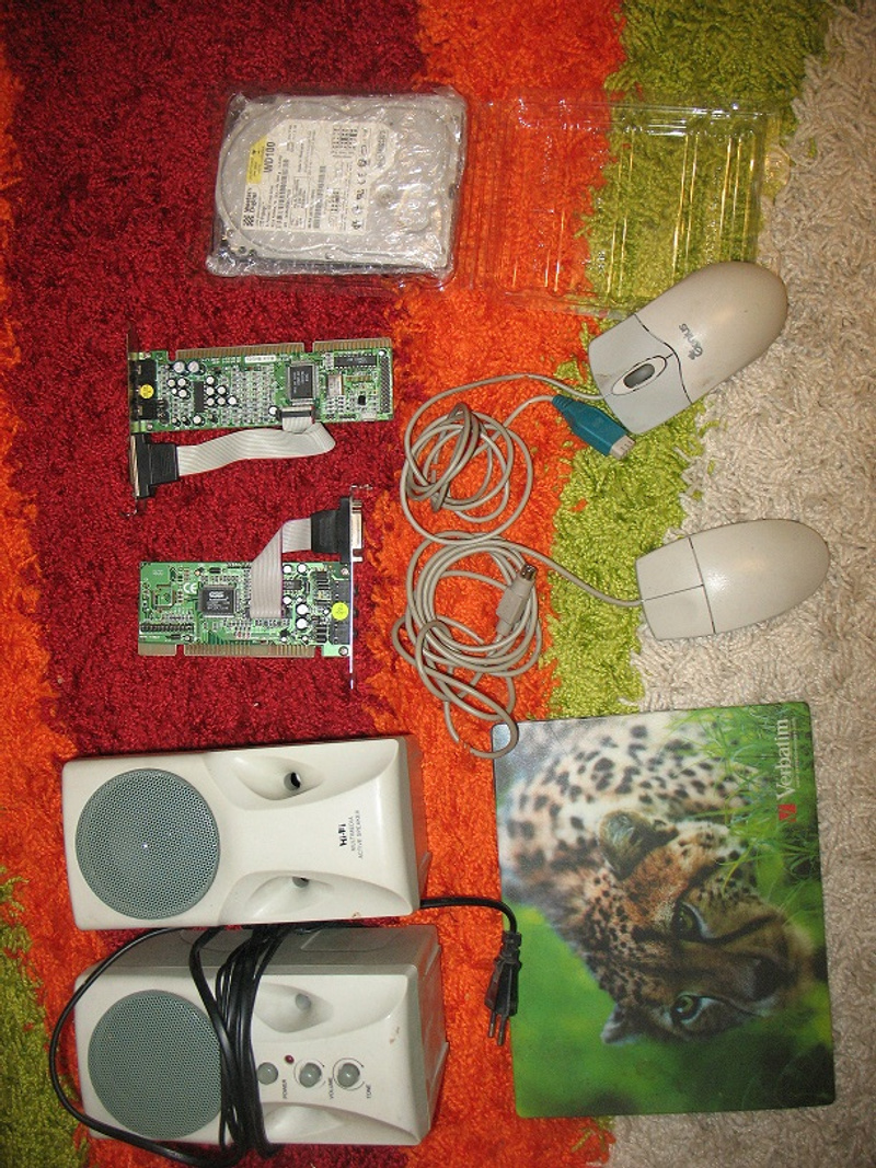 отдам компьютерные колонки , в году этак 2000-м были в рабочем состоянии, а так же звуковые карты 2 шт, 3 мышки - 2 разъем "ps\2" и 1 с разъемом "com", коврик для мышек и винчестер - кажись новый, тк в упаковке полностью, но оч старого образца аж на 10 гигов!все компьютерные ништяки отданы, извините, кому не досталосьпроверять состояние лениво, кому надо- звоните, тел в профиле, забирать с Троллейного ж/м
