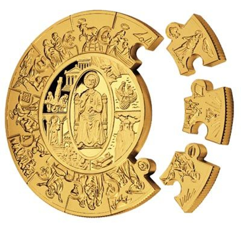 Т.к. монета пруфовская и в запечатанной капсуле. Откроешь капсулу монету назад в банк не примут. Капсула упадёт - пазл рассыпится; придётся капсулу вскрывать, собирать монету....![]()