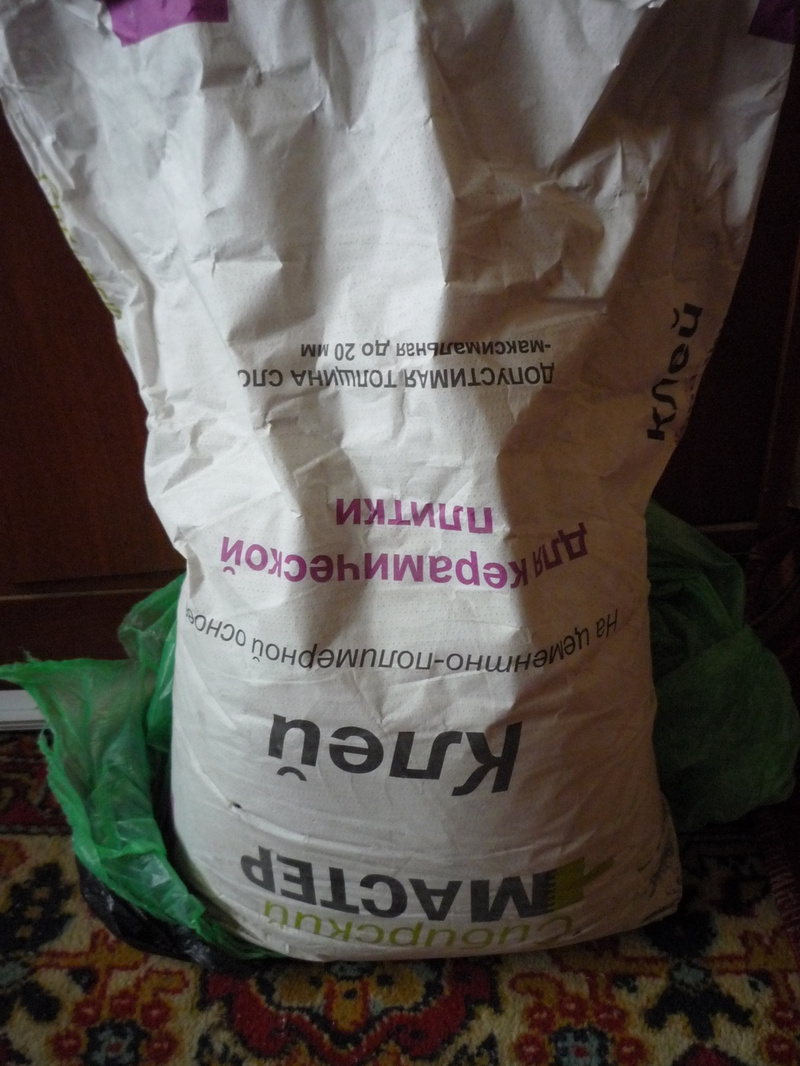 4. Клей для керамической плитки, около 10 кг осталось.