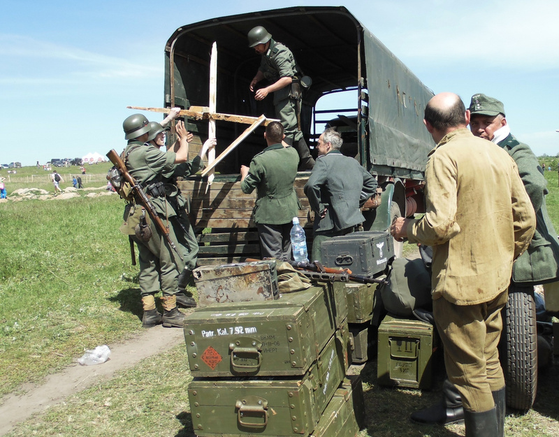Странное у нас общество. Прилепил на стекло своей тачки наклейку «41-45-й, можем повторить» - молодец, патриот. Часами сколачиваешь под проливным дождём укрепления для реконструкции – клоун и лицедей. Дыша перегаром в лицо девушки в форме, просишь её перевязать тебе – далее следует название того, что именно перевязать – настоящий мужик. Не спишь ночами, разрабатывая сценарий и изучая форумы – пиаришься на памяти героев. Разместил георгиевскую ленточку вконтактике – скорбишь и помнишь. Ползёшь по грязи с винтовкой или пулемётом на глазах двух тысяч зрителей – милитарист, хочешь войны… Продолжать можно долго.