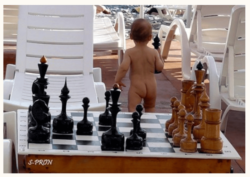 На побережье, нет равных в шахматы ему…