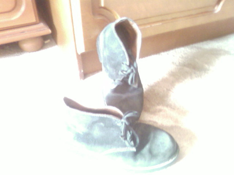 продам ботиночки на размер 32 ( по крайней мере, так в европейской маркировке), б/у, натуральная темно-синяя замша снаружи и мягонькая телячья кожа внутри, куплены в Испании, носили аккуратно, но шов задний на одном ботинке таки пришлось подшить в ремонте. сто рэ. центр.