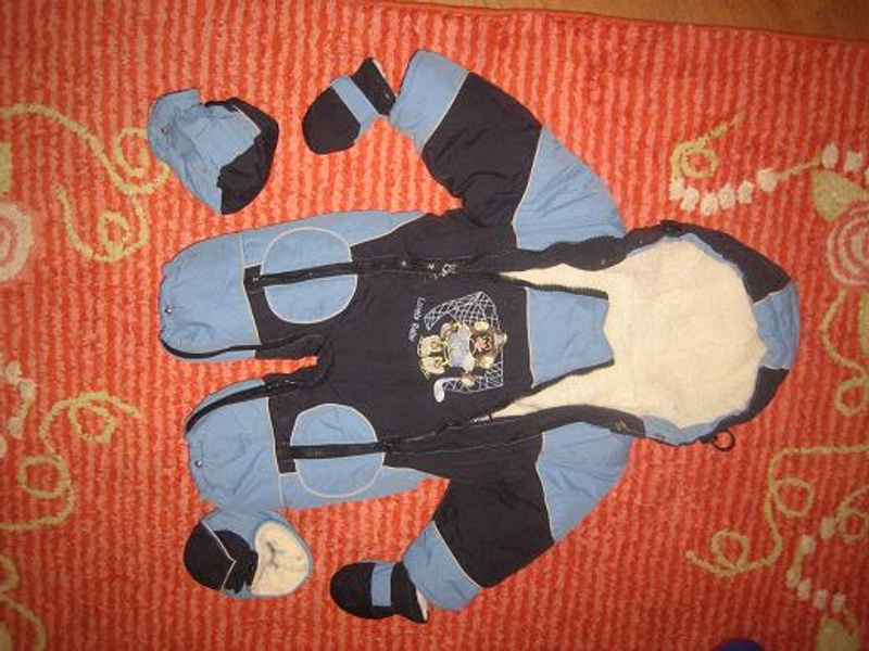 продам зимний комбезик для мальчика КИКО до 80 см +пинетки+вари. На овчине, б/у.