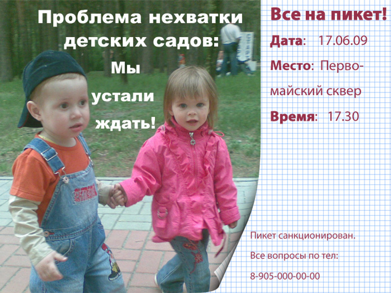 Да, я все получила. Я сделаю все что от меня зависит, чтоб быстрее провести пикет. Т.к. в эту сб. уже 30 мая и потом надежды получить сад в этом году уже не будет, т.к. распределение закончится.вообще-то практически везде уже состоялось распределение мест. Получается "особо активным" места предоставят за счет тех кто уже есть в списках