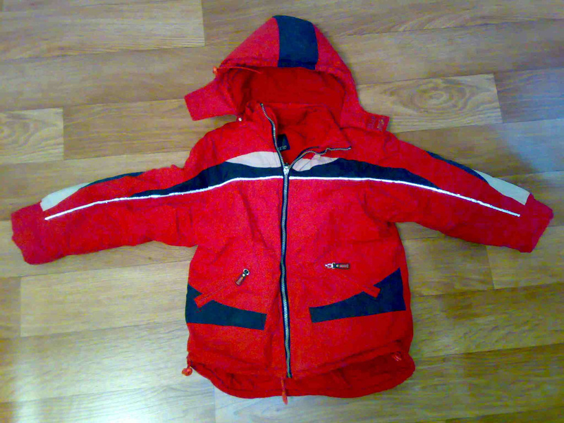 2. Комбинзон пуховый. Темно-синий с зелеными вставками. Подкладка - флис. Утеплитель -80%пух + 20% перо и синтепон, Верх - полиамид (не промокает). Практически новый (ходили нечасто, в основном в коляске).