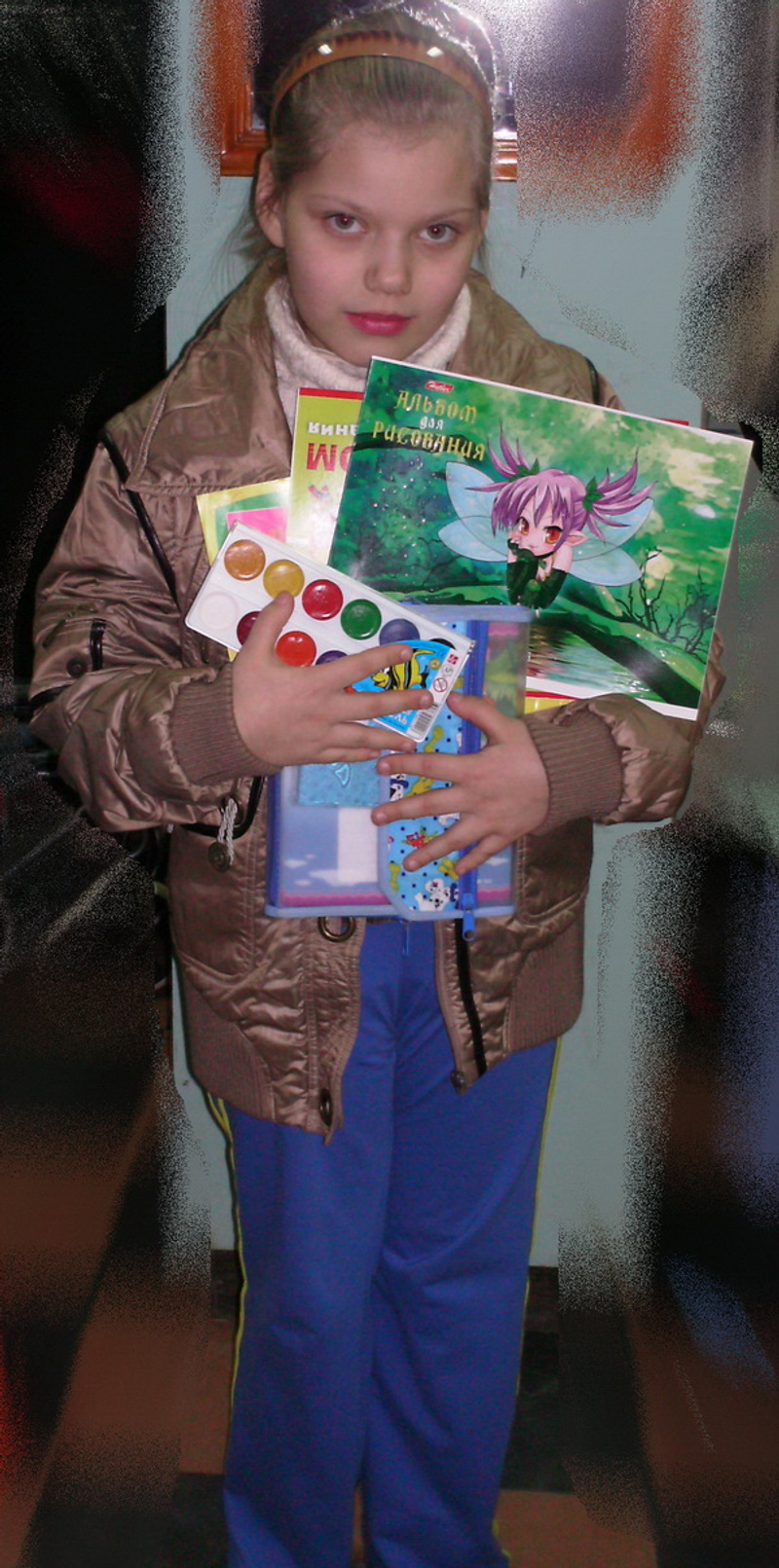 Соне поравились обручи для волос и заколки, книги, тетради, канц принадлежности. (Соню перевели в другую школу и мама до сих пор не может ей купить ни учебники по новой программе, ни остальное, а Соню дразнят в школе одноклассники). Ходят девочки в совдеповских тоненьких курточках на тонком синтепоне. Спасает теплая кофта.