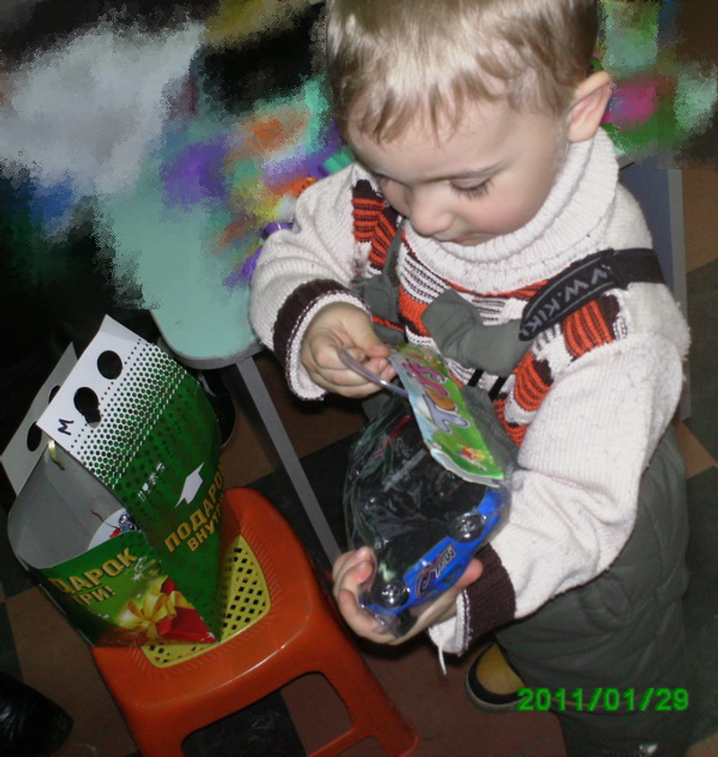 Саша - 8 лет. Мама воспитывает одна. Живут с Сашиной бабушкой, болеющей раком. Все средства мамы также идут на помощь бабушке. На его день рождения в январе мы подарили вертолет на радиоуправлении и книгу "приключения Буратино". Подаркам Саша был очень рад. Сейчас мама не можетпозволить себе такое((