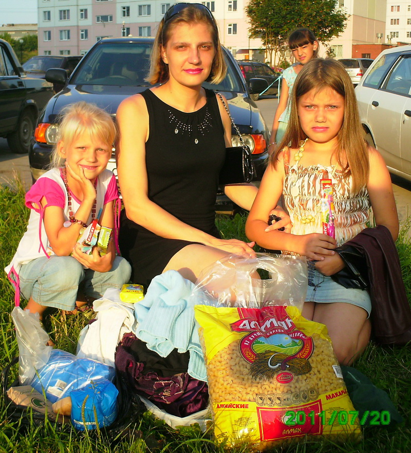 Валентина - мать-одиночка 4 девочек - 10 мес., 1 год и 10 мес. 5 лет и 9 лет получила помощь в виде одежды на девочек и продуктов питания от Романа. А также обувь, предметы быта. Девочки говорят :"Спасибо!"