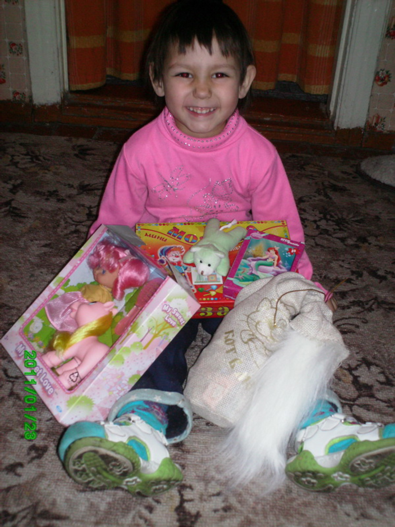 Мы передали игрушки, пазлы, новогодний подарок, мозаику, одежду для Ани 4 лет, которую воспитывает прабабушка 74 лет.
