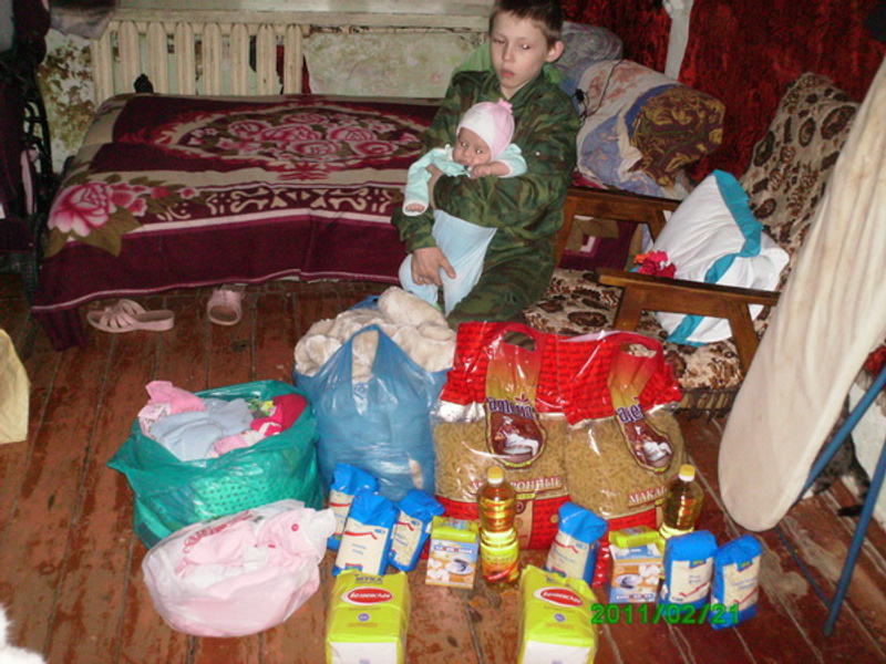 Т.к. они живут на пенсию бабушки, которая очень мала, мы помогаем этой семье продуктами.