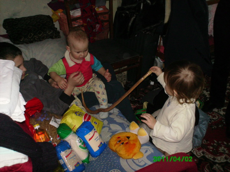 Живут одни. Большая потребность в утюге. Также нужны куртки на девочек на зиму и теплые штаны. Были переданы продукты питания, некоторые вещи, игрушки.