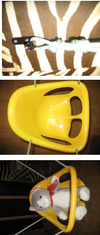 в ней можно кормить- пластик легко моется и малышу не скучно