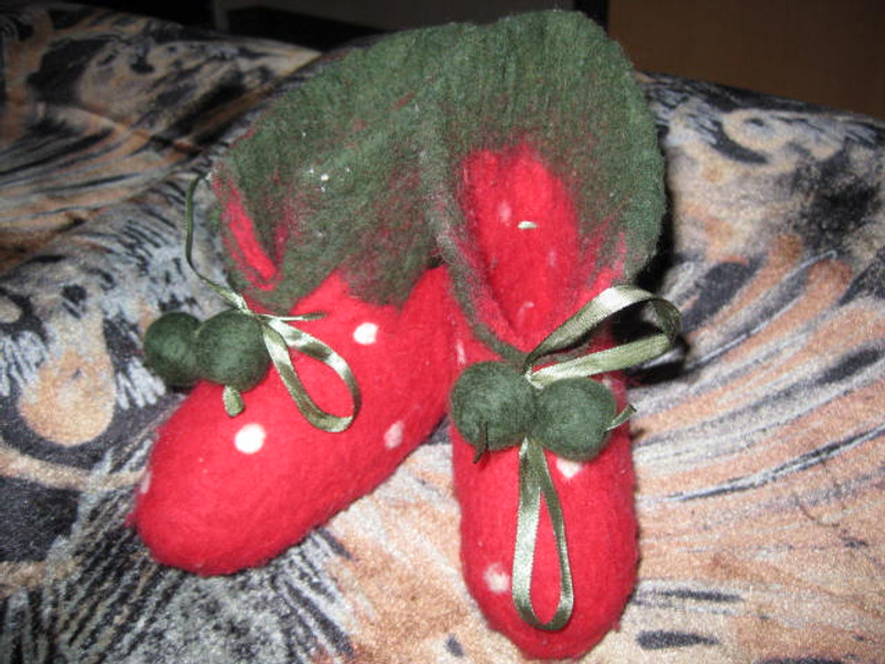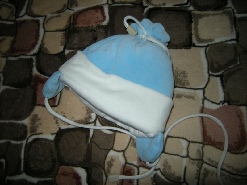 В подарок шапочка с иск.мехом и варежки вязаные.