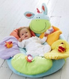 и слишком маленькому ребенку месяца до полутора, а то и до двух по барабану общение и игрушки, но после двух месяцев ребенок начинает интересоваться всем, и если он покушал и через 10 минут захныкал по логике любого консультанта ГВ надо дать грудь, зачем это делать, вот этого я не понимаю