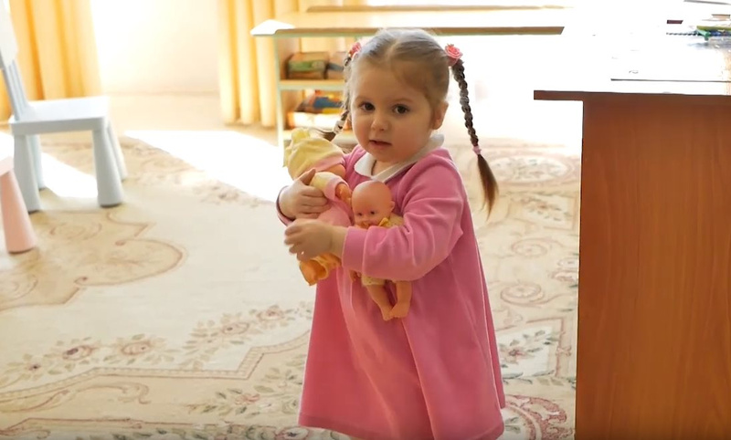 Девочка, несмотря на приветливость и дружелюбие, не имеет расстройства привязанности. Когда к ней подходят взрослые или кто-либо из медицинского персонала и пытается с ней поиграть или поздороваться, Вика сначала смотрит на няню и если няня разрешает, начинает общаться с другим человеком. А уж когда Вику хотели взять на руки и покачать, Вика очень рассердилась и показывала пальцем, что она с няней и только няня будет ее качать.