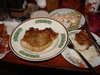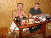 Я купил пирог с капустой, винегрет, помидоры, хренодер, типа плова с курицей и большим количеством болгарского перца, пять натуральных котлет из корейки на косточке, клюквенный морс и соленые помидоры. Соболев привез сала и самогонки. Володя хорошую водку. Поели и тут баня подоспела. Хорошо попарились, посмотрели на звезды в ясном морозном небе, попили Иван-чая с медом. Тут подоспели эти котлеты, предварительно отбитые молотком, посоленные, поперченные и сдобренные приправой для мяса и пожаренные под грилем на решетке. Вкус специфический!!! (голос Райкина).Так все было отлично!