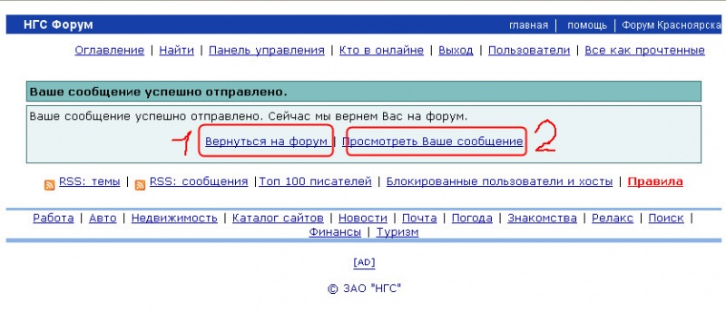 А что еще можно видеть на этой странице? Там только две ссылки: 1) переход в оглавление подфорума 2) просмотр только что отправленного сообщения. Обе ссылки нужные. Не вижу связи и разницы. Точно также можно перейти через "назад" в браузере или также кликнув на соотв ссылку, которая есть на каждой странице.Разница весьма неслабая. При переходе назад в браузере может открыться уже устаревший вариант оглавления и придется еще и страницу обновлять.