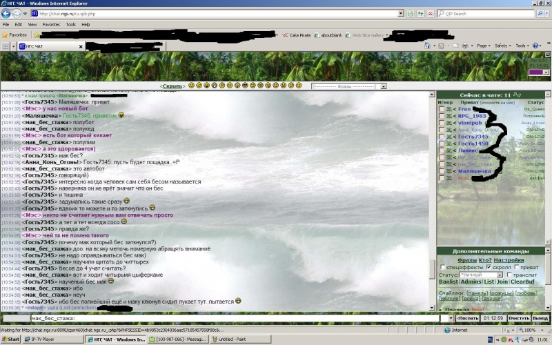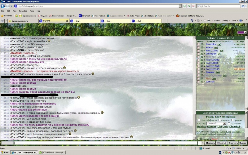 модер Мэс начала меня задевать в чате и пытаться оскорбить не с того не с сего. отвечал ей по возможности, не оскорбляя Мэс. потом вышел из чата. и зайти уже не могу - модер Мэс забанил меня не не объясняя причины и не предупреждая. также непонятно на какое время.