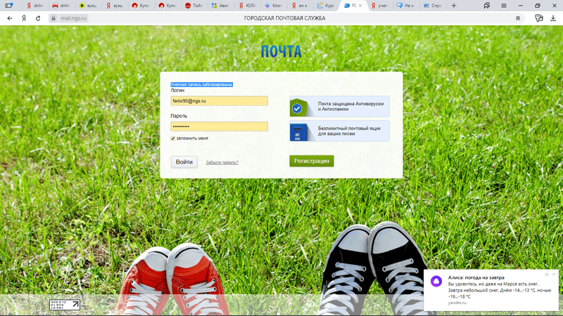 Прошу восстановить почтовый ящик - Учетная запись заблокирована. evg-str@ngs.ruЯщик разблокирован 23.10.2019 г.