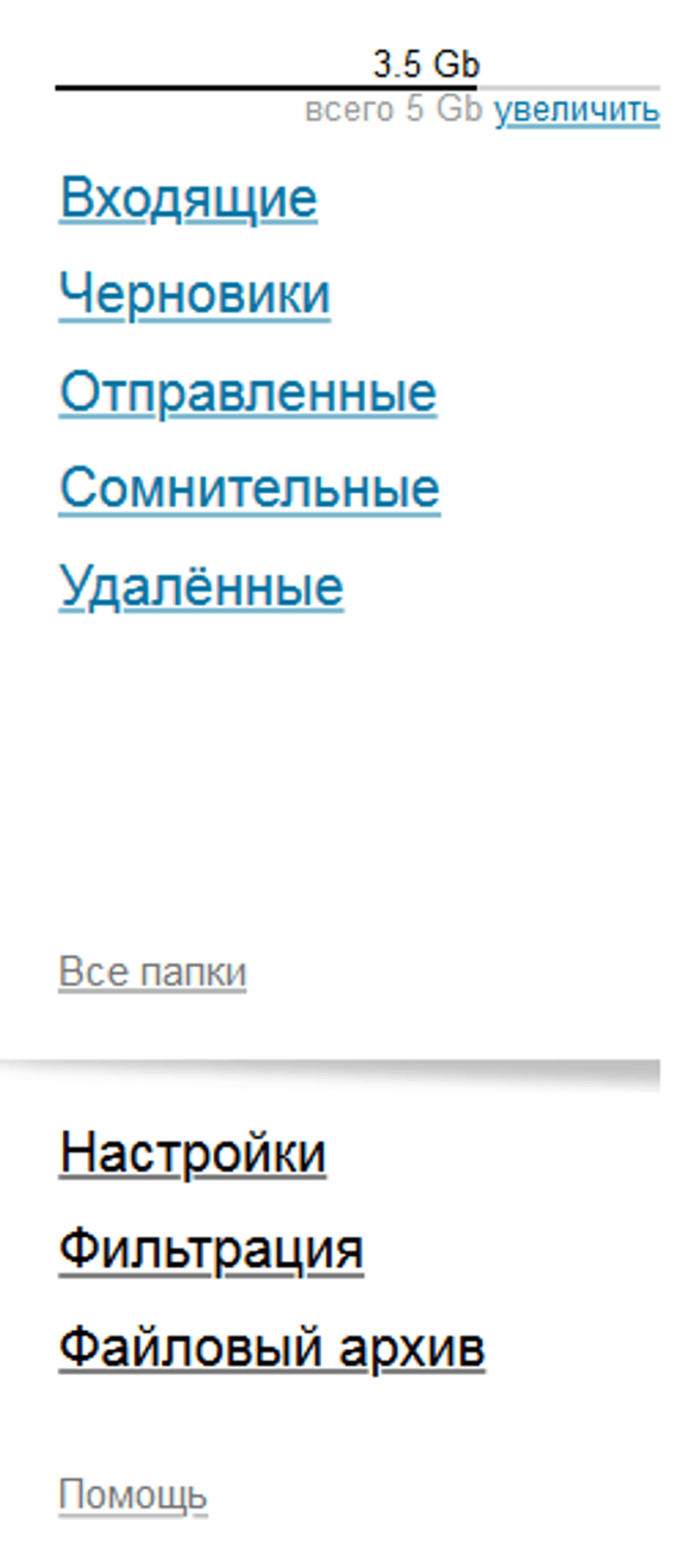 После увеличения объем почтового ящика составит 10 Gb.