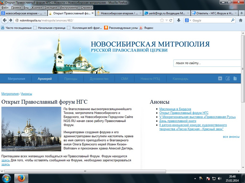 По благословению высокопреосвященнейшего Тихона, митрополита Новосибирского и Бердского, на Новосибирском Городском Сайте NGS.RU начал свою работу Православный Форум.
