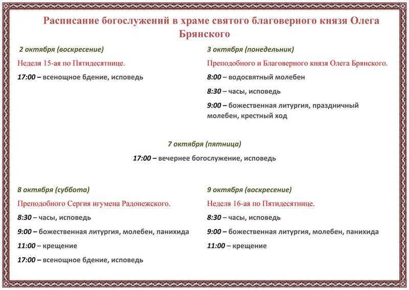 Ответ на сообщение Новости Храма Святого Благоверного князя Олега Брянского пользователя Алексий