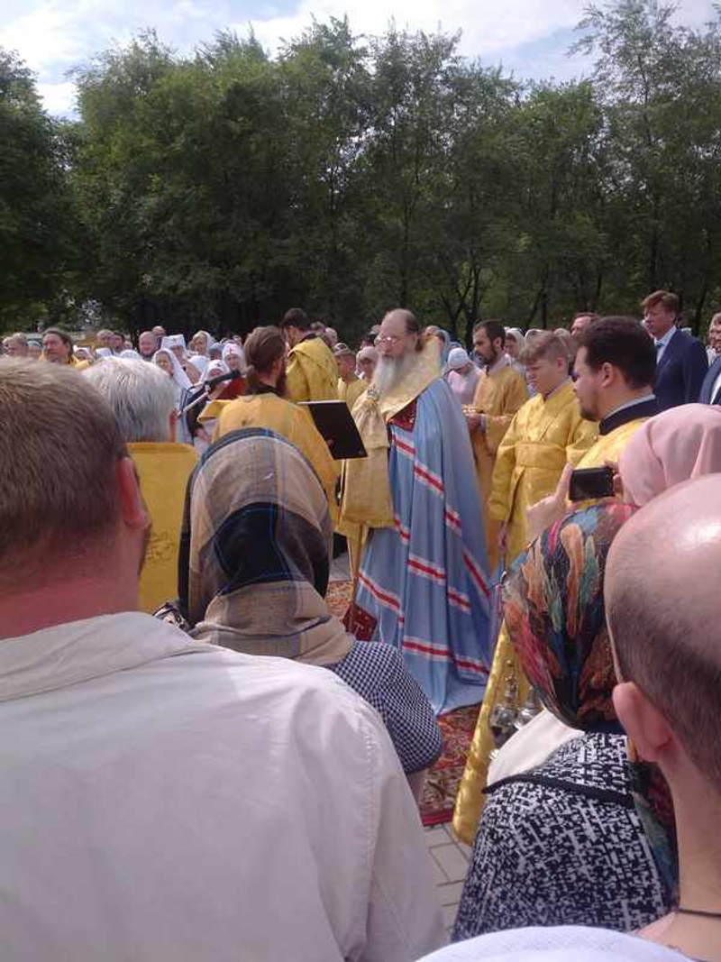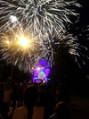 Фильм о крещении Руси проецировали на здание собора. Фейерверк был мощный и красивый. Народу было много.