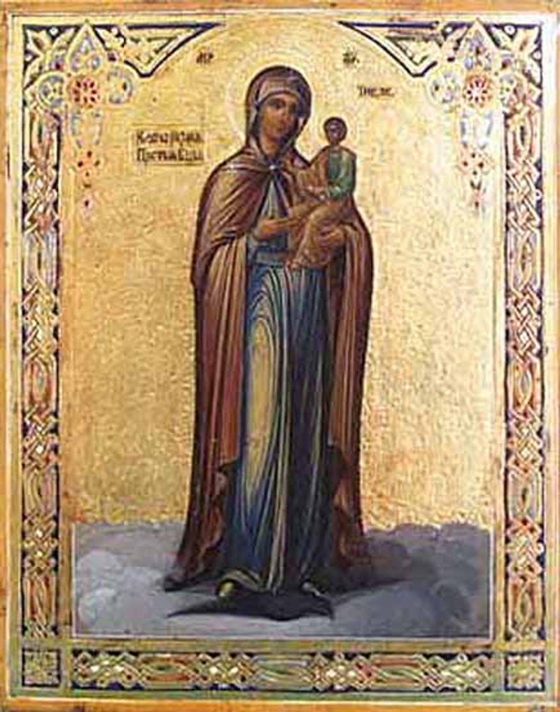 Недоумеет ум и бессилен бывает егда тщится уразумети вселенское чудо явления в мир Богоматере, зане превыше плотянаго ума сочетание в единей девства Матере и деторождения Девы. И ныне сердцем чистии и кротцыи, осиянные смирения благодатию, да предстанут образу Царицы душ девственных и, от Нея приявшии силу и бодрость на подвиг жизни своея, да славословят Ю сице: