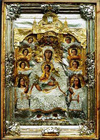 Графичность ликов, миндалевидный разрез глаз передают черты греческого прототипа иконы.