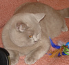 Окрас относится к группе биколорных- голубой с белым. Почти все британцы в нашем городе, у которых есть белый цвет в окрасе, имеют в предках Калифорнию(Асю).