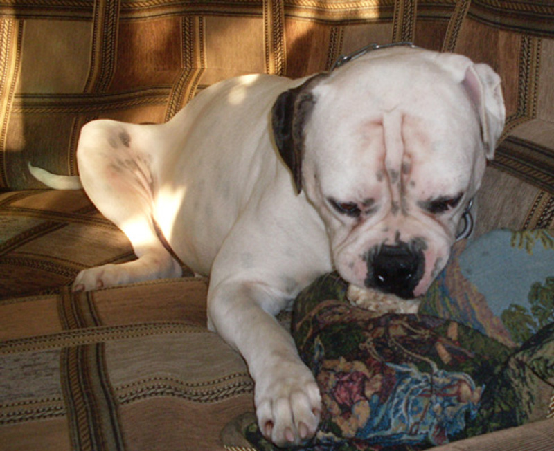 Американский бульдог Чилд, за которого больше всего переживал, устроен, "обут, одет, накормлен"!
