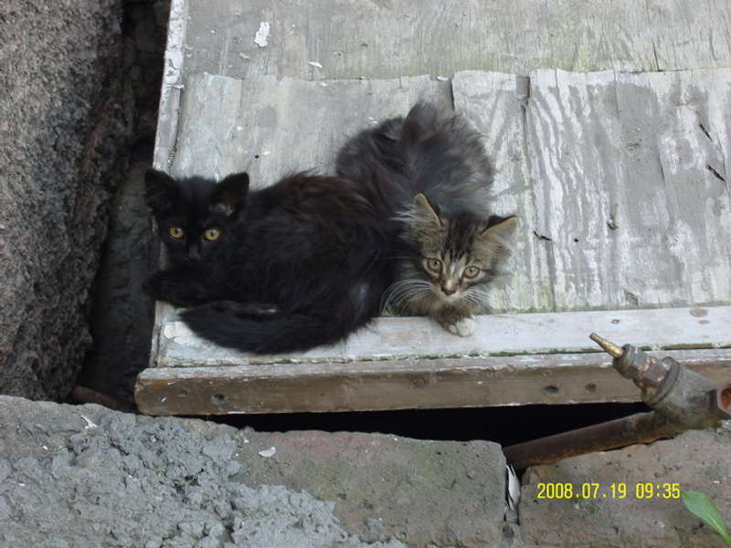 В общем дело обстоит так: в соседнем подвале обитает огромное количество кошатин,среди них около 7 котят примерно 3мес возраста. Котята очень трусливы, подойти к ним практически не возможно, они шипят и удирают в разные стороны. вчера принесла им поесть они в разные стороны разлетелись, я отошла метров 10 они начали подходить к корму, но как только я сделала шаг вперед дали деру. Увидеть их можно только тогда, когда рядом с подьездом стоит машина, они под ней тусуются, чтоб в случае чего было куда зашкериться. Как только машина уезжает их практически не возможно увидеть они отсиживаются в подвале.