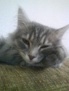А мы использовали как наполнитель, сначала друвесную стружку пресованную в гранулы-все было хорошо, но запах мочи просачивался. взяли силикогель - долго не могли в него пойти... А я еще(вот дура) вымыла лоток с комет-гелем. Соответственно запах хлора остался. Вот и воевала пару дней - кот вместо того, чтобы в свой лоток идти, ходил то на линолиум рядом со своим лотком, то в мокрую тряпочку. Засыпала снова древесные опилки - милое дело... Но самое главное: мы так тщательно загребаем свои дела, что в ход идет и половичок под ногами около унитаза, и ни дай Бог, что-то рядом лежит или упало, и газета и полотенце. Кормим его РК по дозировке, прописанной на пакете 2 раза в день: утром и вечером. И не больше! Так ходит выпрашивает! и становится ласковы-ласковым, хотя не очень ручной. Вот такими мы были котенком. Как хотели чтобы окрас остался...