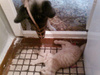 Я тоже не стала смотреть, не смогу... Даже читать не могу про такие вещи, а смотреть и подавно. Давайте я лучше новую фоточку выложу, дабы отвлечь всех от грустных мыслей! Так у нас проходит знакомство и подружение (сама слово придумала ) собачки и котенка)))